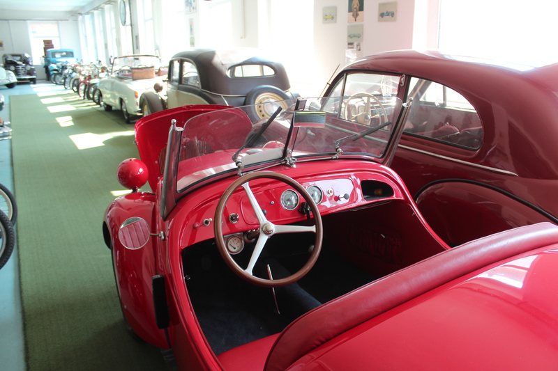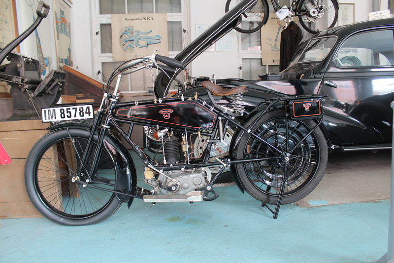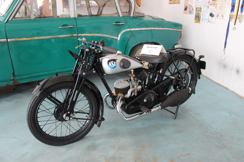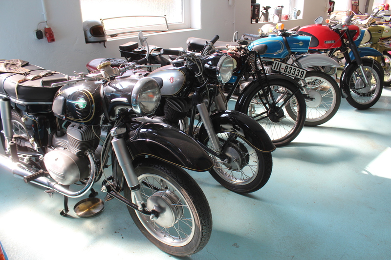 Das echte Highlight jedoch war das Verkehrsmuseum. Auch wenn einige Exponate ausgeliehen waren, gab es genug zu sehen und zu staunen. Seht Euch nur die Bilder an. So gar eine Böhmerland stand dort. Daneben verschwanden die anderen Motorräder fast allein angesichts der Fahrzeuglänge.